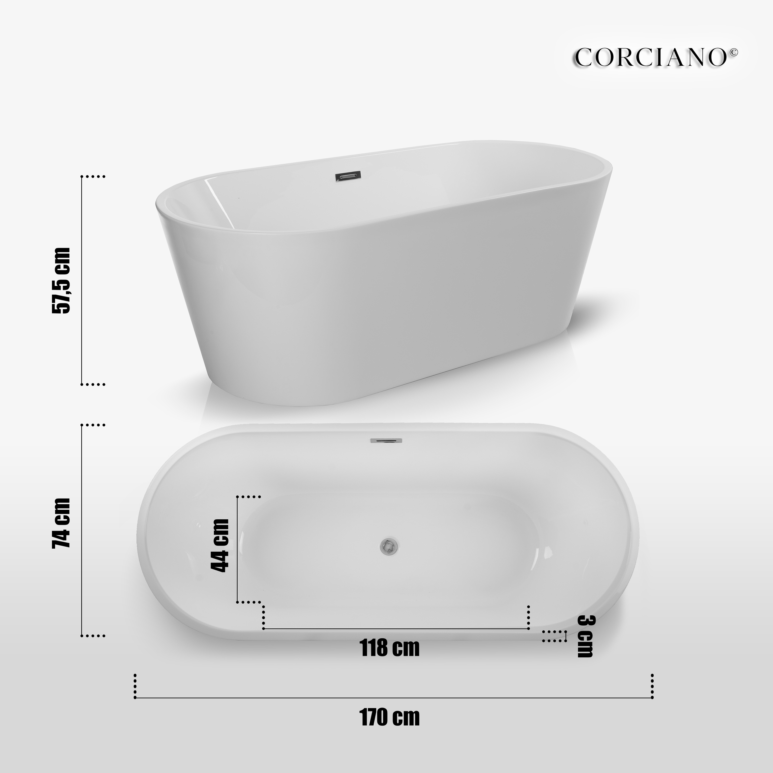 - Długość wanny – 170 cm