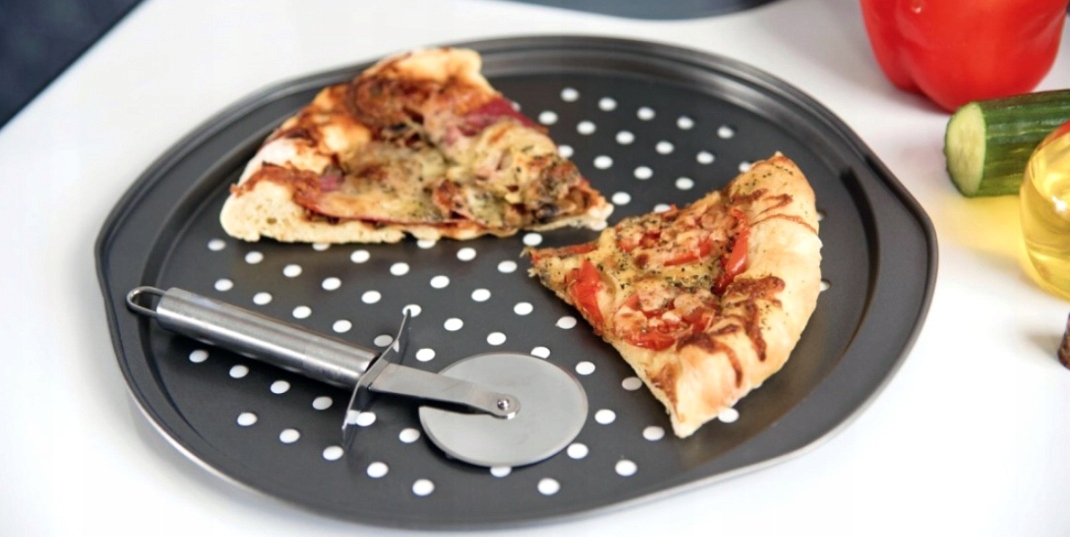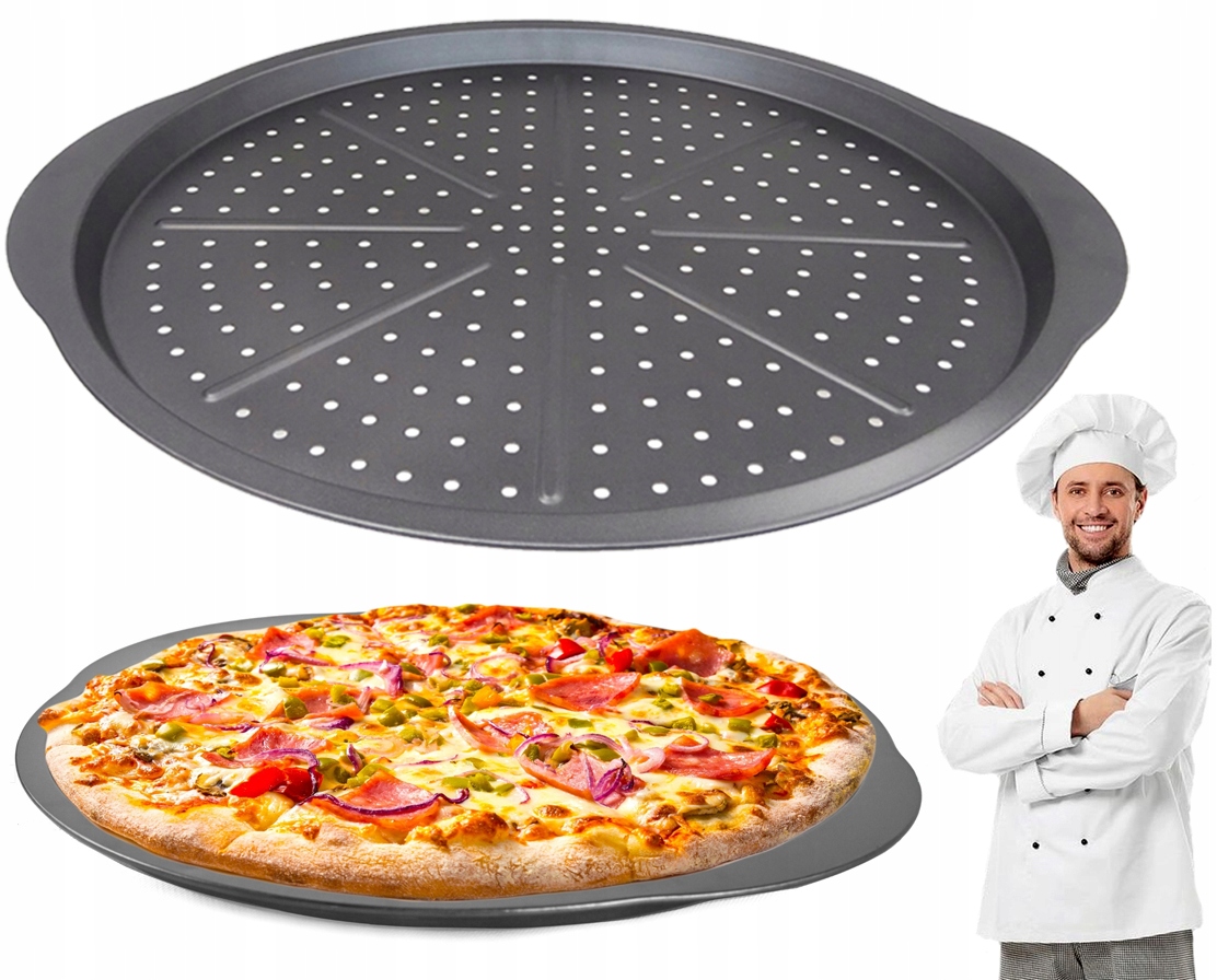- Blaszka równomiernie nagrzewa się, a jej perforowanie zapewnia chrupiący spód pizzy.