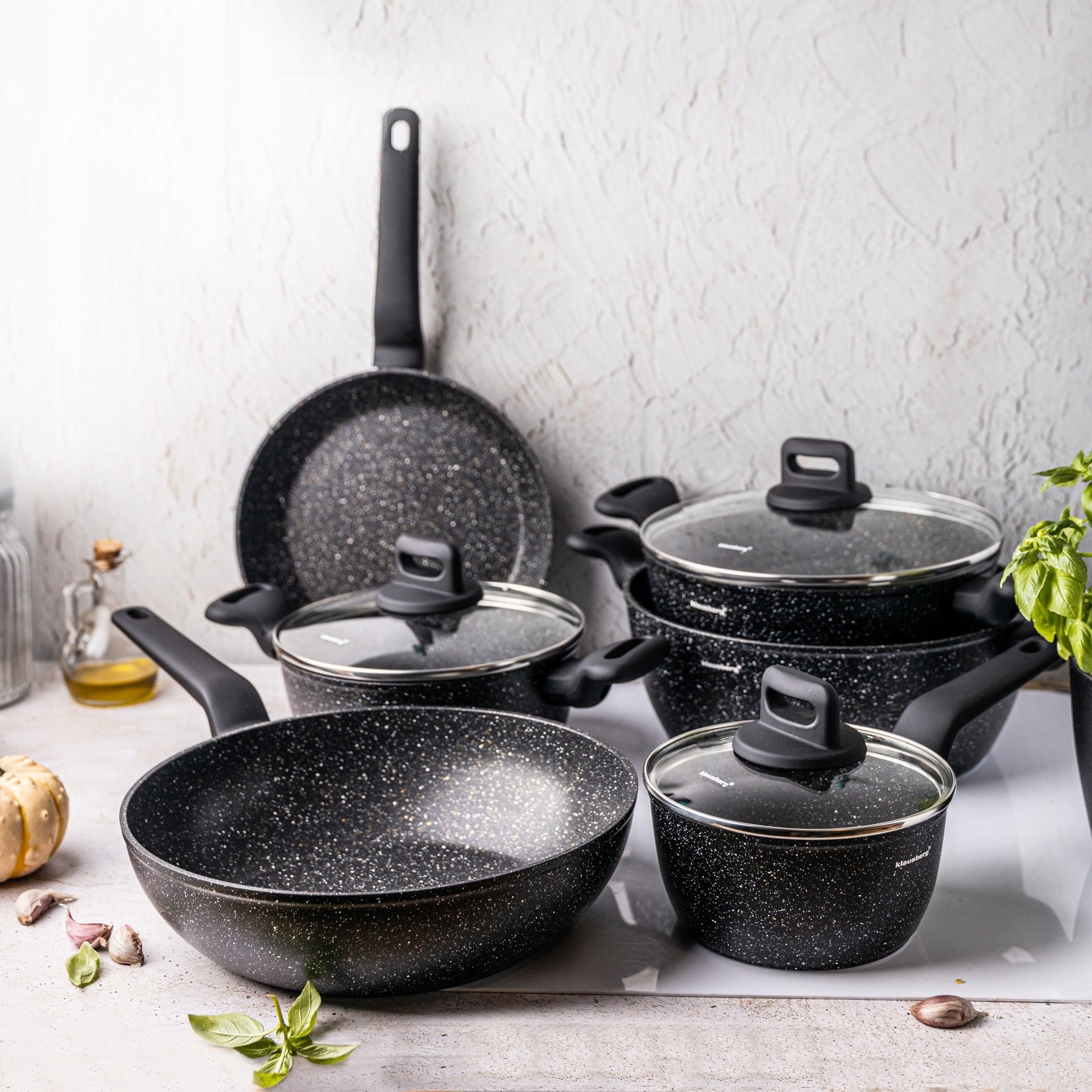 Zestaw garnków z niezwykle trwałą powłoką marmurkową.