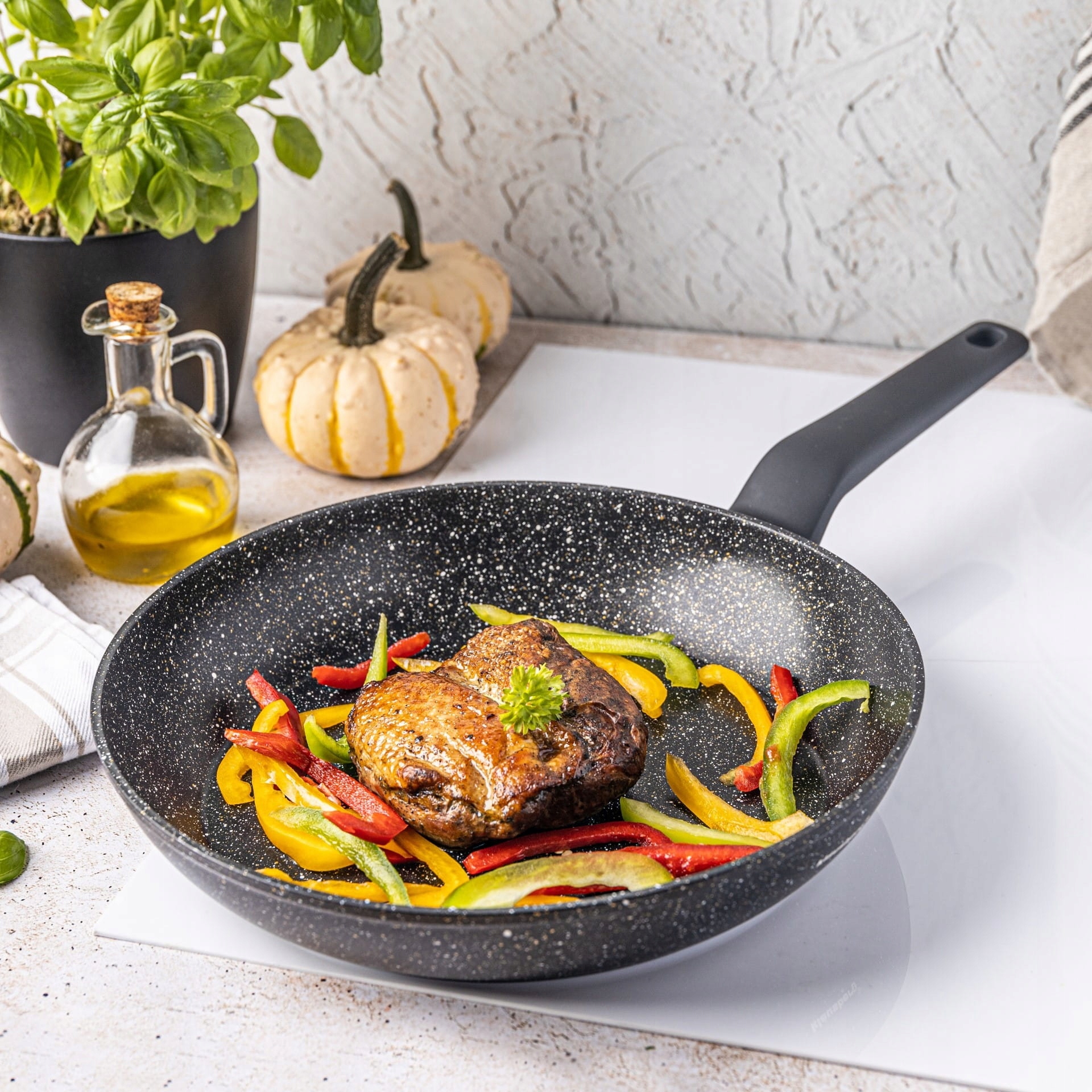 • Marmurkowa powłoka nie przywieralna : Gwarantuje, że potrawy nie przywierają do dna, a zarazem umożliwia łatwe czyszczenie.