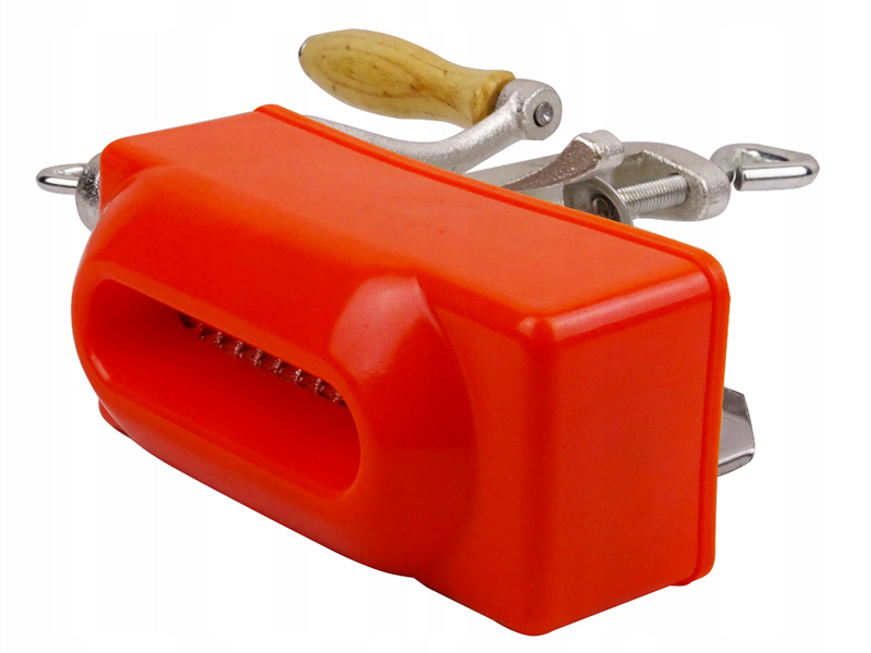 Solidna, żeliwna konstrukcja urządzenia, napędzana kołami zębatymi, czyni maszynkę długowieczną i odporną na uszkodzenia mechaniczne.