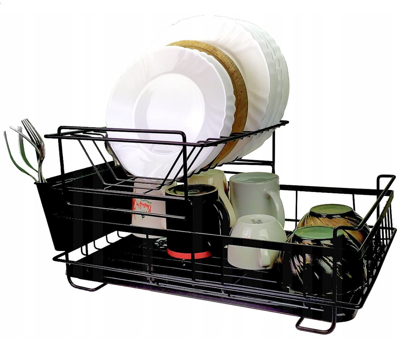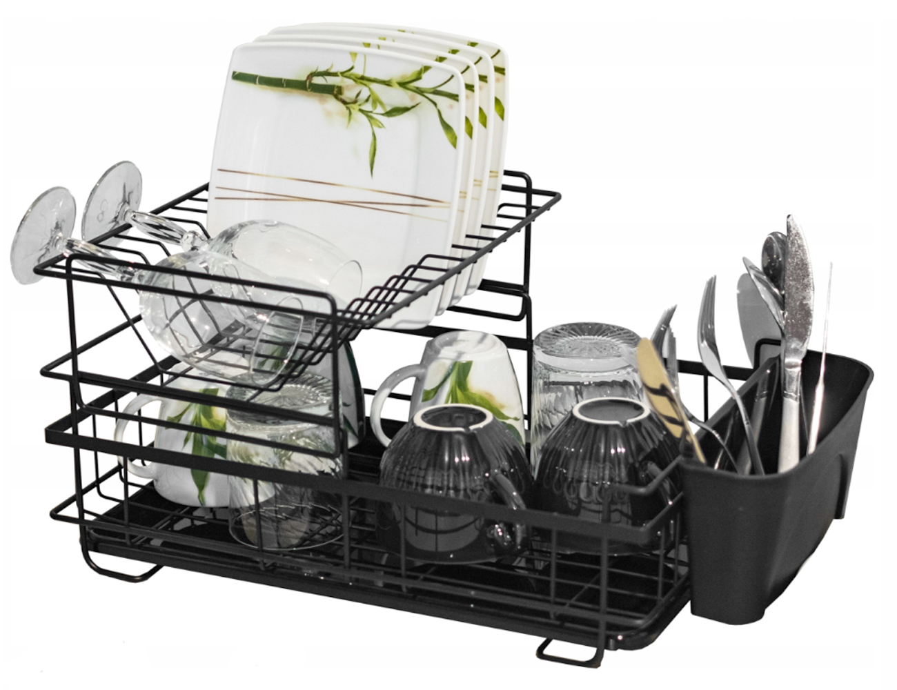 Stojak projektowy mieści sztućce i naczynia o wielu rozmiarach do przechowywania lub suszenia. Idealnie pasuje do talerzy kuchennych, misek, zastawy stołowej i nie tylko.