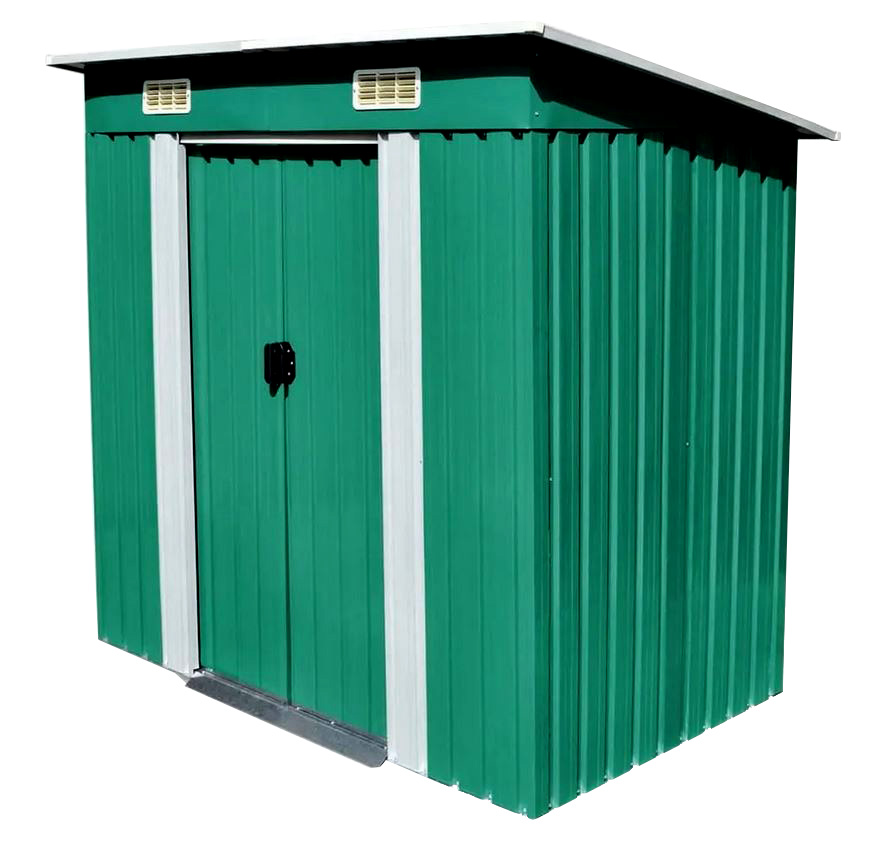 - Domek ogrodowy na narzędzia, urządzenia i meble ogrodowe wykonany z blachy stalowej ocynkowanej ogniowo odpornej na warunki atmosferyczne.