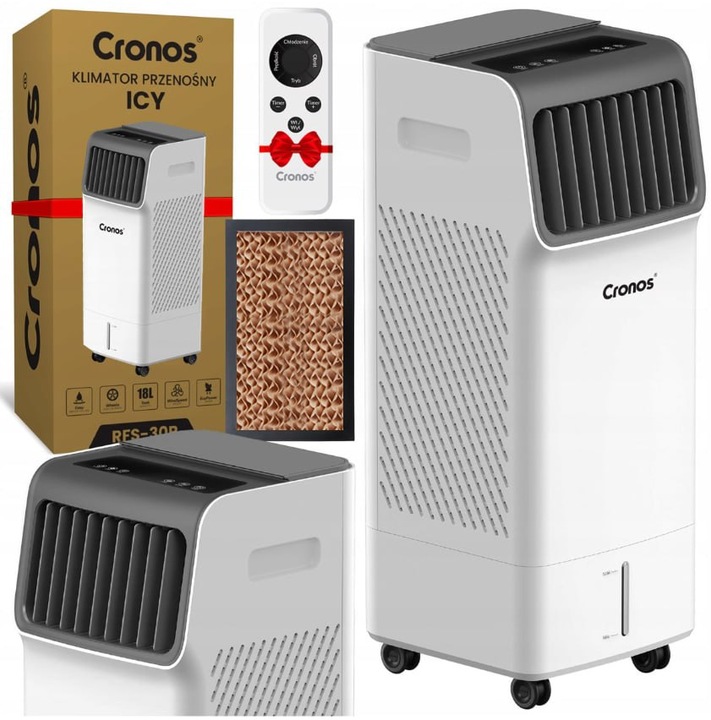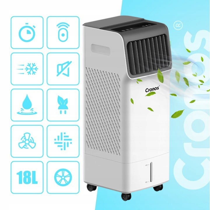 ⭐ CRONOS ICY to urządzenie 4w1, które oczyszcza powietrze z kurzu i niepożądanych cząsteczek, a także skutecznie obniża i nawilża temperaturę w pomieszczeniu.