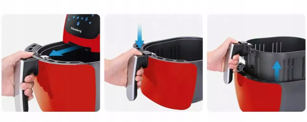 • Kosz wyposażony w nienagrzewający się uchwyt. Wyjęcie kosza powoduje automatyczne wyłączenie urządzenia.